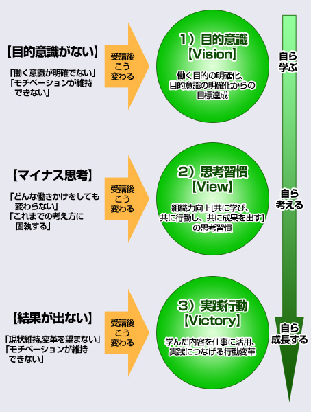 顕在化した能力は更に伸ばし、本人も知らない潜在的な能力を、研修プログラムの学びや気づき、自己理解のプロセスの中で見つけ出し成長を促します。